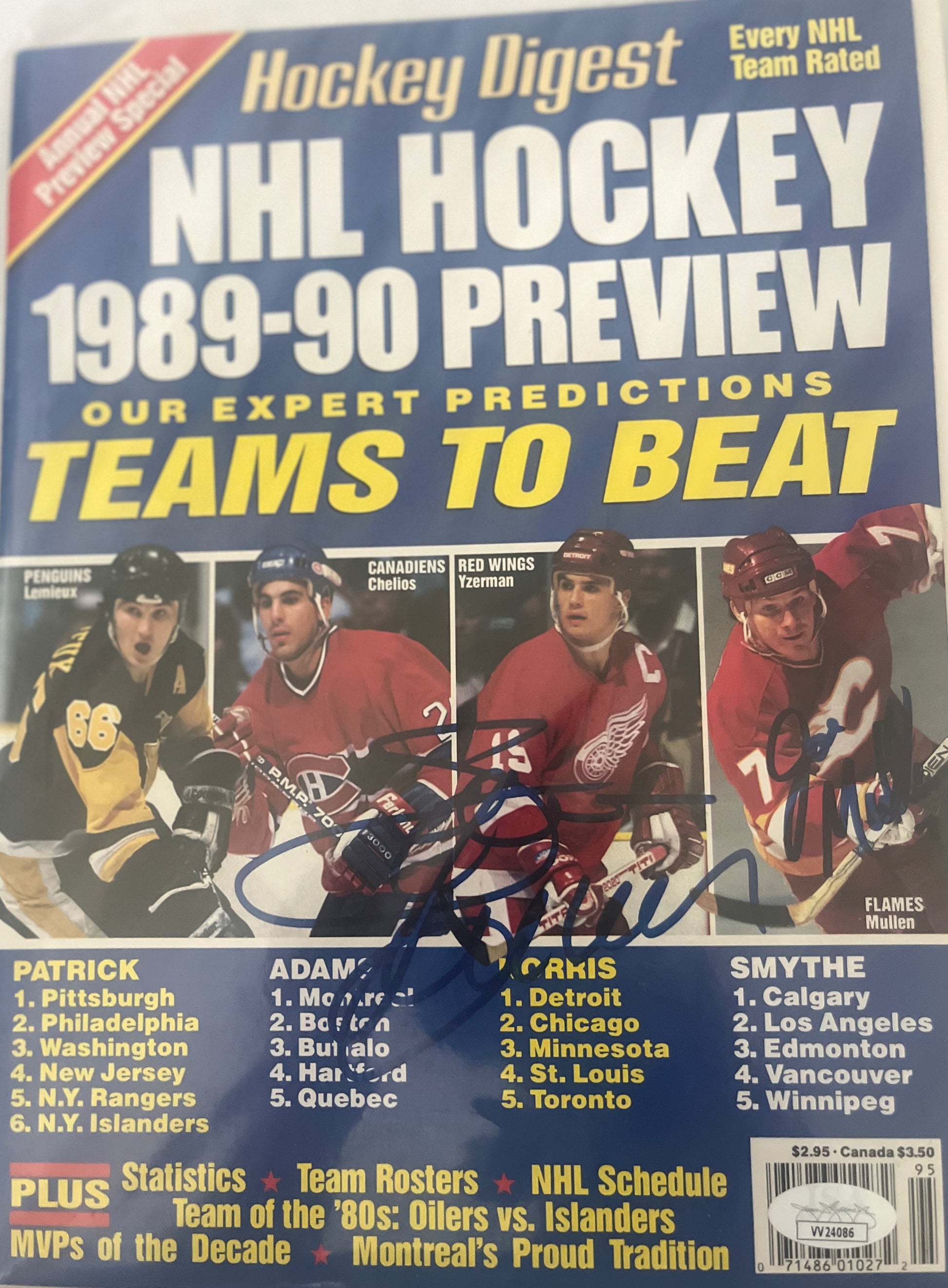 89-90 HOCKEY DIGEST SIGNED BY 7 YZERMAN & JOE MULLEN JSA