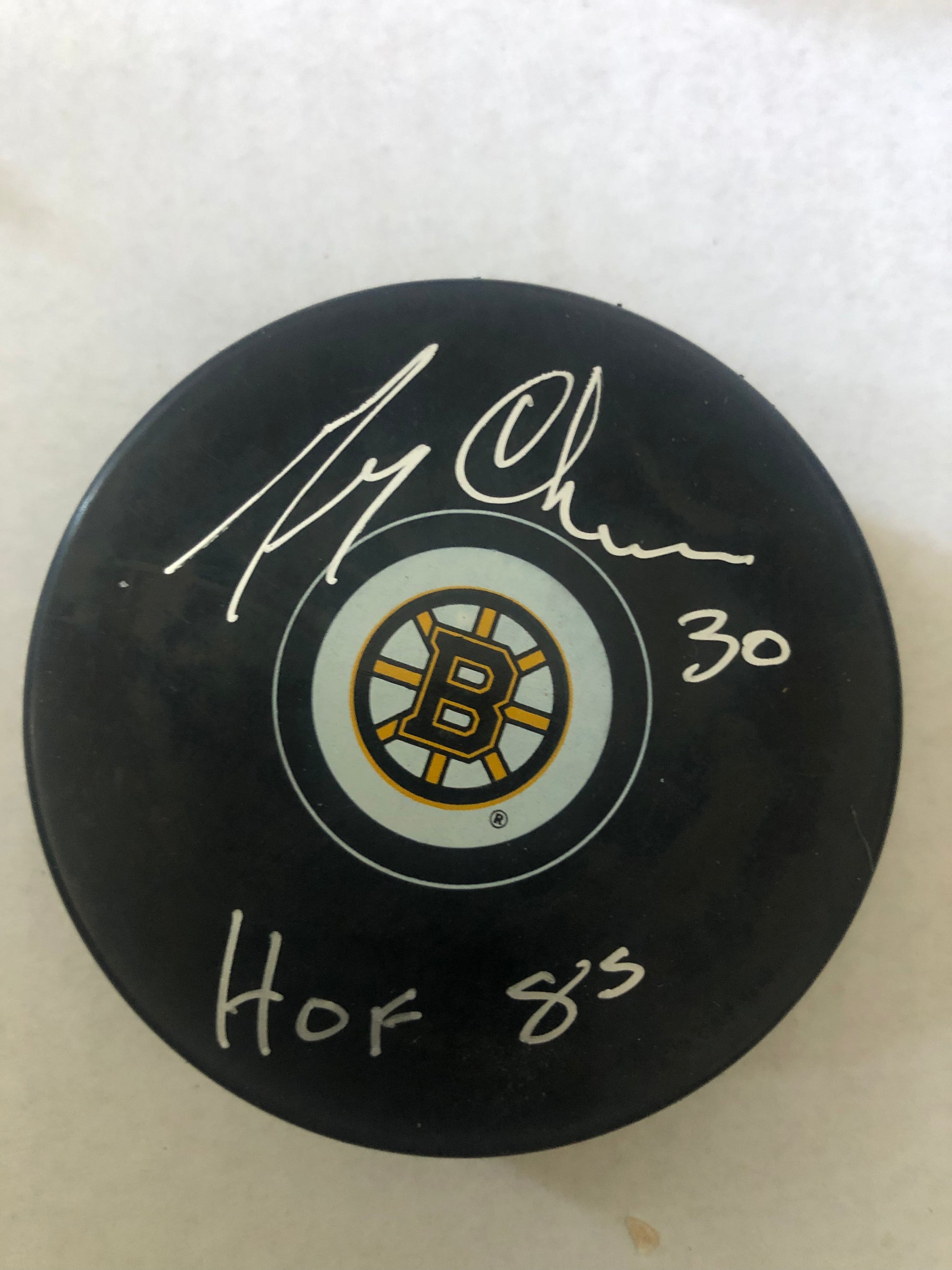 Bruins Gerry Cheevers signed puck w/HOF 85 inscription Cheevers hologram