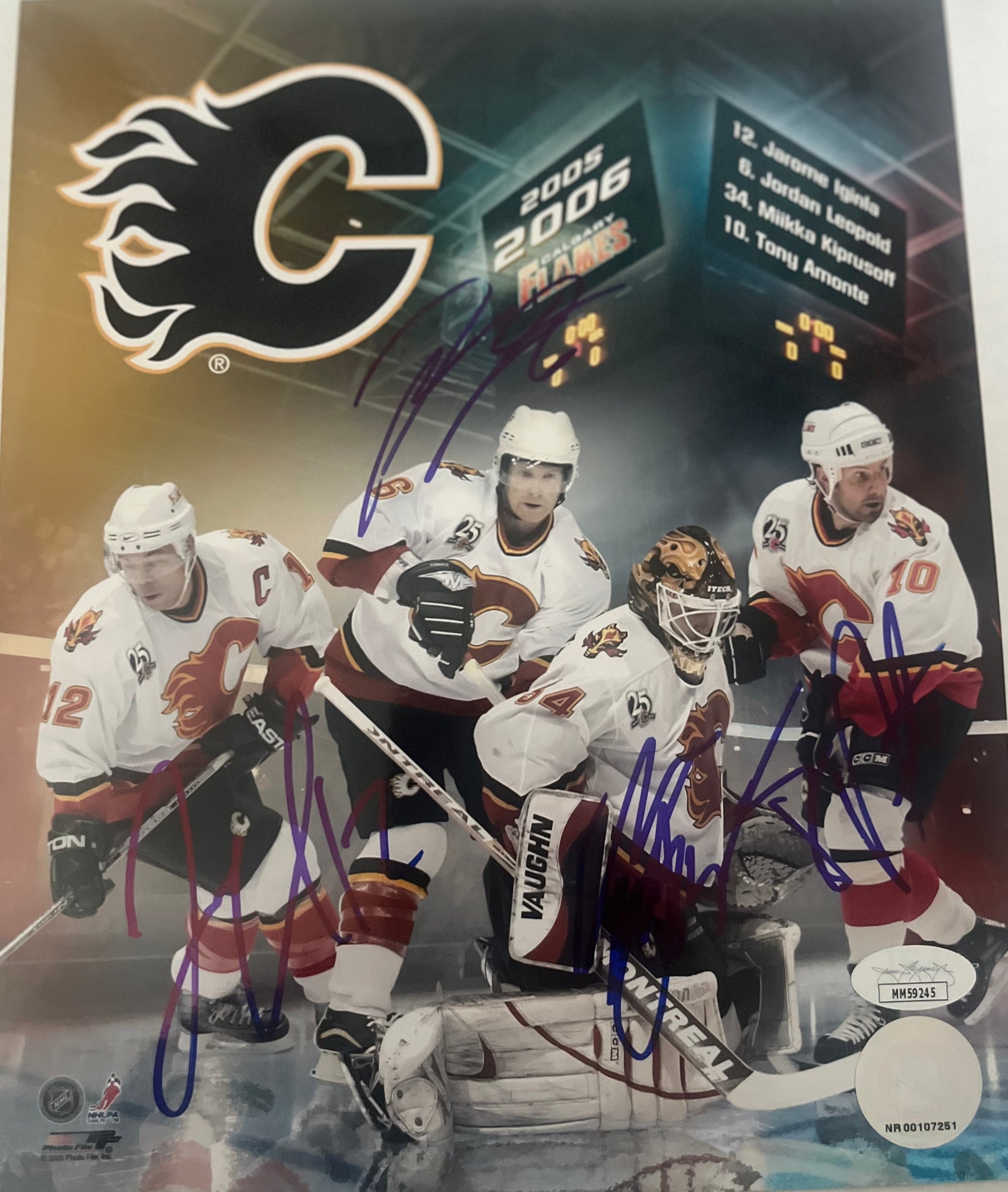 Calgary Flames '05-06 signed 8x10 by Iginla, Leopold, Kiprusoff & Amonte with JSA Cet
