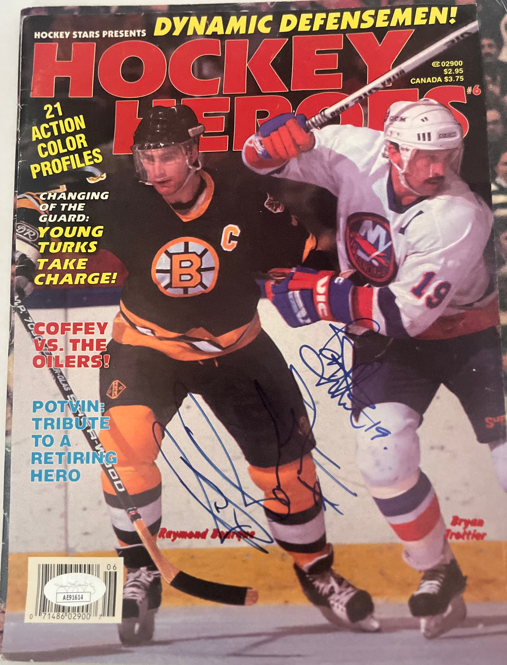 HOF RAY BOURQUE & BRYAN TROTTIER SIGNED HOCKEY HEROS COVER W/JSA