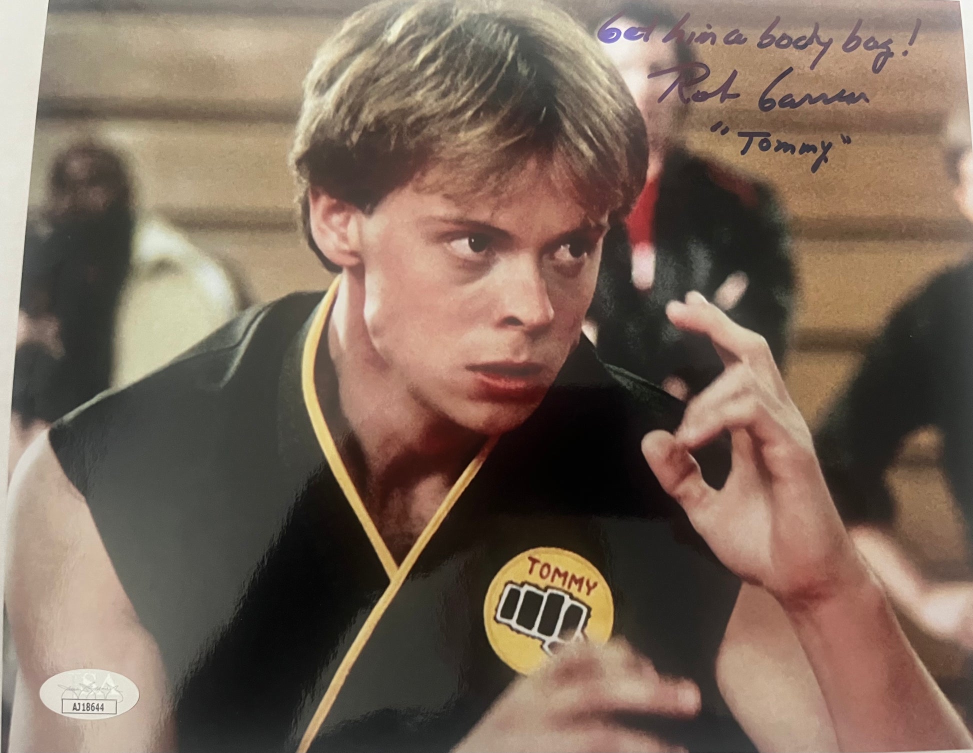 Rob Garrison signed 8x10 Karate Kid "Tommy" w/inscription JSA Deceased